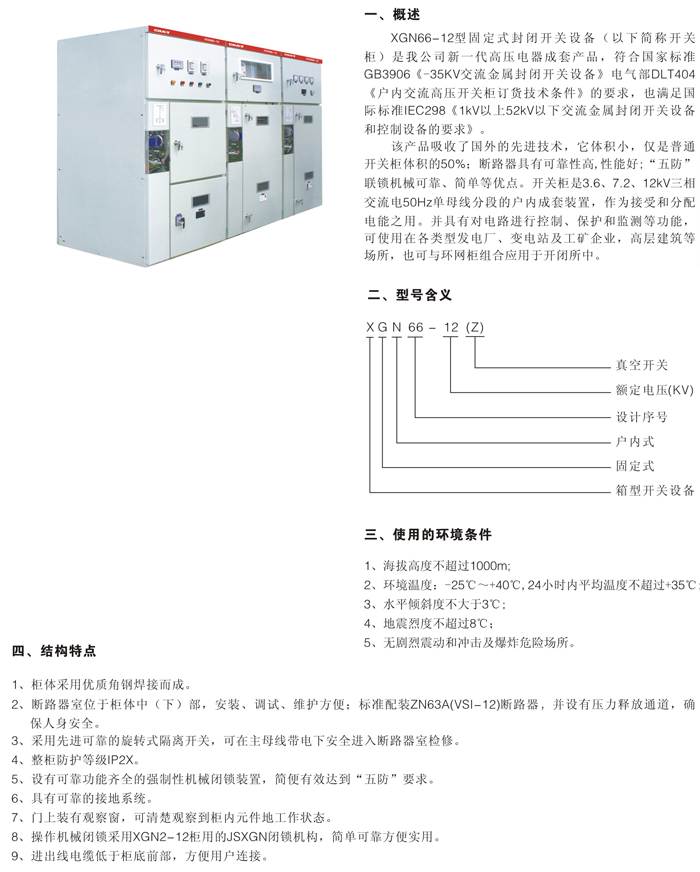 XGN66-12(Z)型固定式封閉開關(guān)設(shè)備