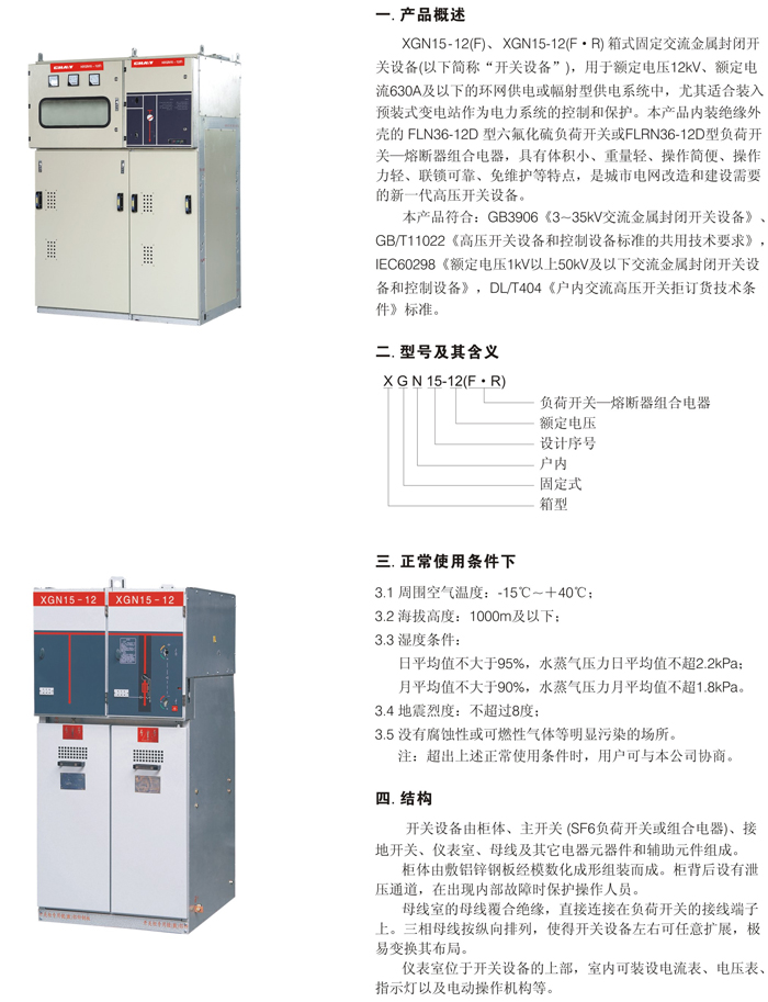 XGN15-12(F)、XGN15-12(F.R)箱式固定交流金屬封閉開關(guān)設(shè)備